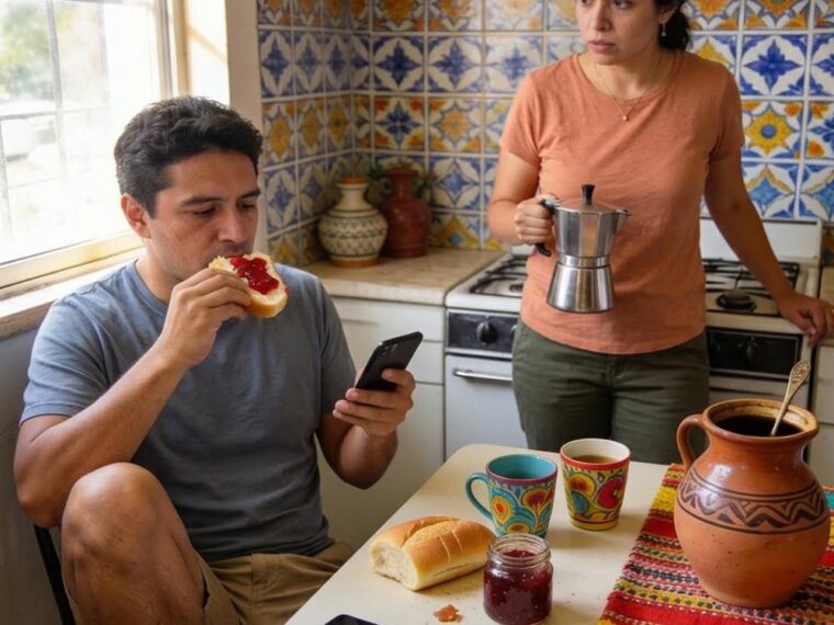 Il était assis dans la cuisine, vêtu d’un vieux t-shirt et d’un short d’intérieur, en train de manger un petit pain à la confiture tout en faisant défiler son écran, comme s’il parlait de la pluie et du beau temps… et non de ma vie.