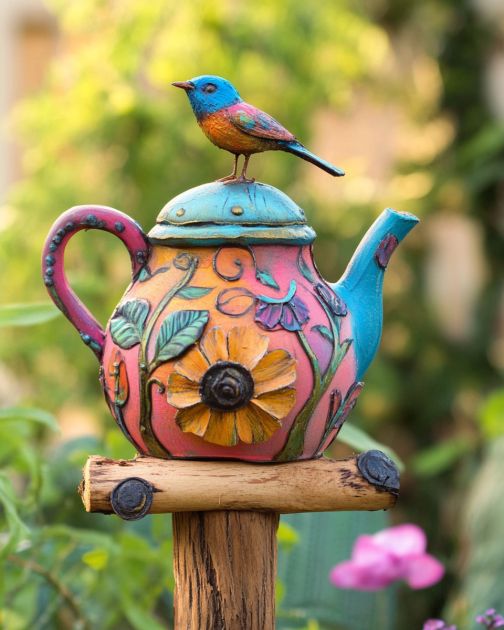 Pour un style plus rustique, vous pouvez laisser la théière non peinte afin de conserver sa patine naturelle.